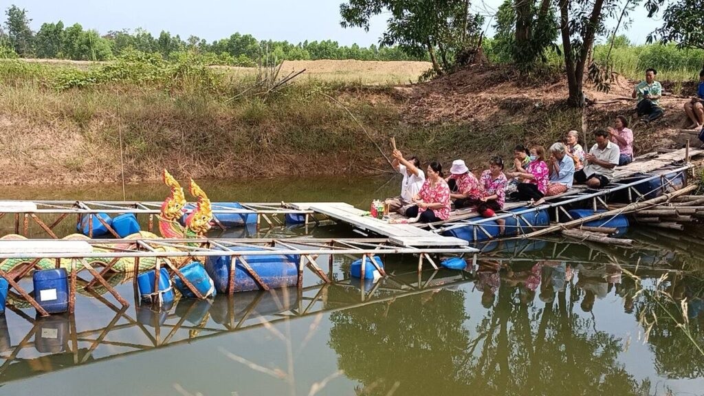 เมื่อวันที่ 14 เมษายน ได้มีรายงานว่า ในช่วงเทศกาลสงกรานต์ มีชาวบ้านที่กลับมาเยี่ยมบ้านในหมู่ตรอกปลาไหล ตำบลย่านรี อำเภอกบินทร์บุรี จังหวัดปราจีนบุรี ก่อนวันหวยออก พากันเดินทางไปยังสระน้ำกลางทุ่งนาของเพื่อนบ้าน ที่มีรูปปั้นพญานาค ตา-ยาย สีเขียวสีแดง 2 ตัวตั้งคู่กันอยู่ในสระน้ำ