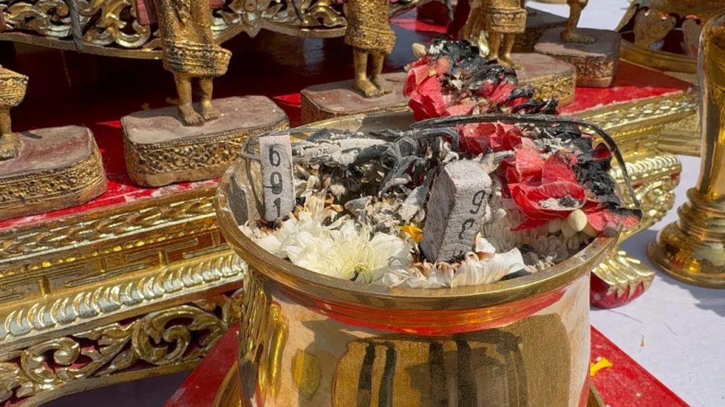 ในช่วงพิธี ชาวบ้านได้มีโอกาสลุ้นโชคลาภ โดยได้เลขเด็ด 691 และ 980 จากพระพุทธมนต์พญาครุฑ ซึ่งเป็นพญาครุฑที่มีความเชื่อมากมายในชุมชน หลังจากพิธีเสร็จสิ้น พระอาสาสมัครใจวัดนางตะเคียนได้แจกเหรียญพญาครุฑจำนวน 999 เหรียญ และน้ำดื่ม 5,000 ขวดให้กับนักท่องเที่ยวและชาวบ้านในพื้นที่ ชาวบ้านที่รู้ข่าวมาต่อแถวกันยาวเหยียด
