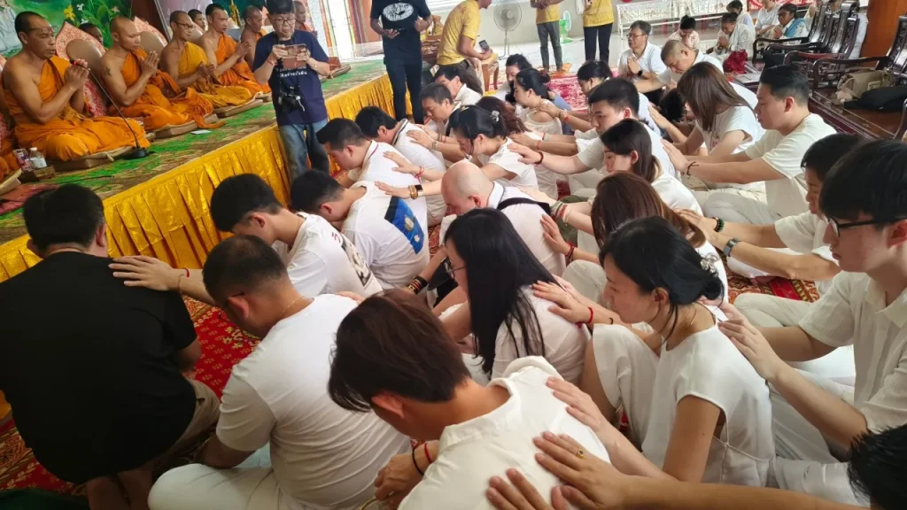 ระหว่างพิธี คณะชาวอินโดนีเซียได้ร่วมสวดมนต์ถวายต้นผ้าป่าด้วยตนเอง หลังเสร็จพิธี พระอาจารย์โชติได้ลงยันต์ที่ข้อมือ ลงนะหน้าทอง และมอบวัตถุมงคลให้แก่ผู้มาเยือน ได้แก่ เหรียญมงคลโชคดีและพระปิดตาโภคทรัพย์โชคดีทันใจ เพื่อเป็นสิริมงคล