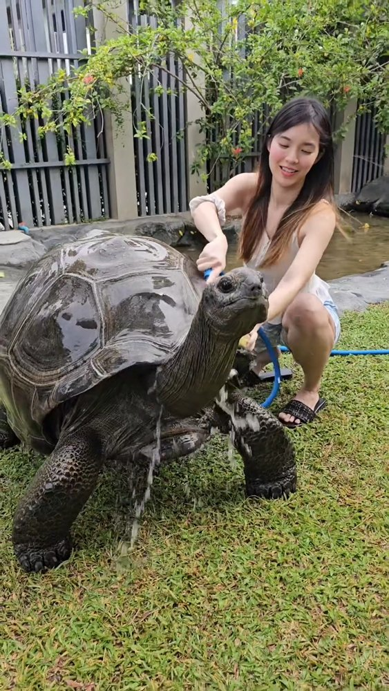 บัว สโรชา น้องสาวของ บีม กวี สร้างความประทับใจให้แฟนๆ ด้วยภาพการดูแลเต่าตัวโปรดชื่อ “นำโชค” ที่เลี้ยงมานาน 19 ปี โดยเธอโพสต์ภาพและคลิปวิดีโอขณะอาบน้ำและขัดกระดองให้เต่าตัวใหญ่