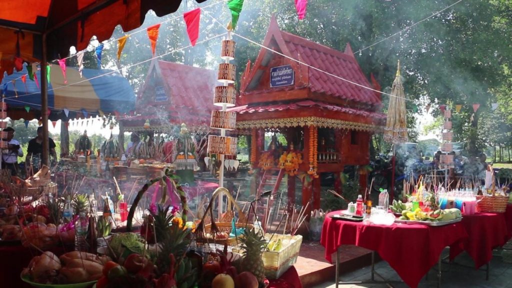 งานประเพณีนี้จัดขึ้นทุกวันขึ้น 6 ค่ำ เดือน 6 ของทุกปี เป็นการสืบสานวัฒนธรรมท้องถิ่นและแสดงออกถึงความกตัญญูต่อสิ่งศักดิ์สิทธิ์ผู้คุ้มครองหมู่บ้าน โดยมีการนำเครื่องสังเวย ผลไม้ ขนมหวาน อาหารคาว เครื่องดื่ม มาถวายเพื่อขอพรและเลขเด็ดให้ชุมชนมีความสุข ร่มเย็น ปลอดภัย