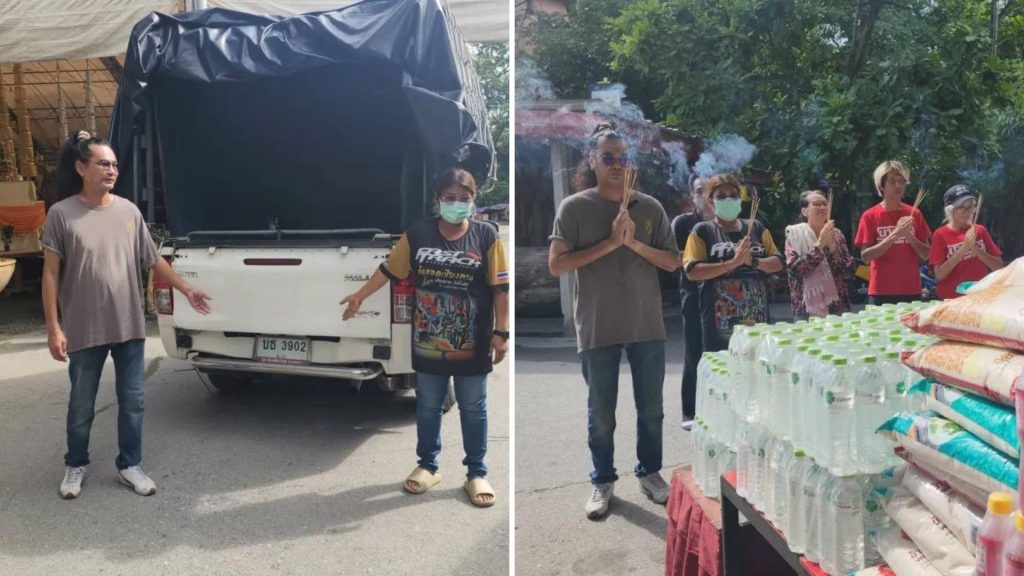 นายสามารถ แผ่นนาค อายุ 50 ปี และนางสาวอังคณา ตันกา อายุ 45 ปี สองสามีภรรยาเจ้าของบริษัทขนส่งสินค้าใน จ.นครปฐม ได้นำน้ำดื่ม 1,200 ขวด และข้าวสาร 500 กิโลกรัม มาถวายแก้บนพระเงินพระทอง หรือหลวงพ่อรวย พระพุทธรูปศักดิ์สิทธิ์ประจำวัด พระครูยติธรรมานุยุต หรือหลวงพ่อแป๊ะ เจ้าอาวาสวัด เป็นผู้ประกอบพิธีบวงสรวงบอกกล่าวการแก้บน โดยให้คู่สามีภรรยาจุดธูปเทียนบูชาและบอกกล่าวต่อเทพเทวดาและองค์หลวงพ่อพระเงินพระทอง