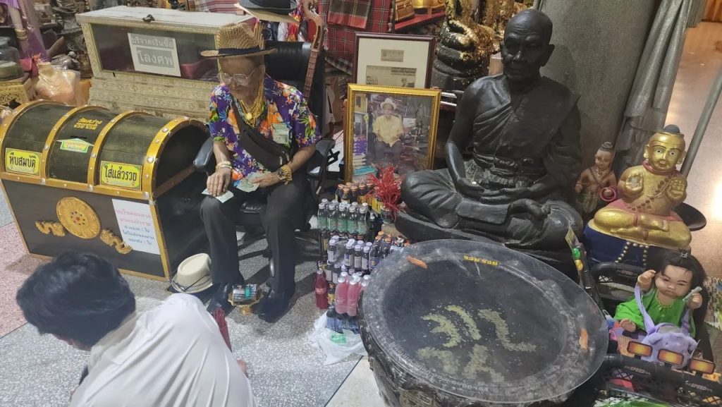 อนึ่ง สิ่งที่นิยมถือเป็น 1 ใน 10 ของประเทศ ที่นักเสี่ยงโชคให้ความเชื่อถือมาก คือ หุ่นปั้นตาทองงิ้วราย ซึ่งมีสถิติให้โชคกับนักเสี่ยงโชคมากที่สุด และบริเวณรอบๆ ตัวหุ่นจะมีทองรูปพรรณต่างๆ ใส่ตามตัว รวมถึงมีอ่างน้ำมนต์ที่มีหยดน้ำตาเทียนลอยอยู่ ให้นักเสี่ยงโชคนำไปตีเป็นเลขเด็ดประจำงวด