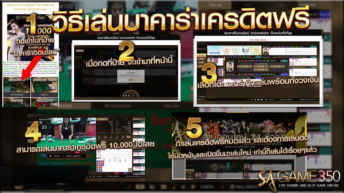 sagame350 มีเครดิตฟรีให้ท่านที่ชื่นชอบในการเล่นบาคาร่าได้ทดลองเล่น ก่อนที่จะทำการฝากเงินเล่นจริง เช่น บาคาร่า SA GAMING , บาคาร่า WM CASINO , บาคาร่า AE SEXY และ บาคาร่า DG CASINO อยากจะทดลองระบบว่าดีไหม ทดลองว่าบาคาร่า คือ สุดยอดเกมไพ่ที่ดีที่สุดจริงหรือเปล่า หรือจะหัดเล่นเก็บเกี่ยวประสบการณ์กับเกมไพ่บาคาร่าให้มากที่สุด เล่นได้เลย ไม่ต้องสมัครสมาชิกหรือฝากเงินก่อน เครดิตฟรีที่ให้เล่นบาคาร่า 10,000 เป็นเพียงเงินทดลอง ไม่สามารถถอนได้แต่อย่างใด หรือรับเครดิตฟรีแบบถอนได้ สอบถามเจ้าหน้าที่ทางไลน์ได้เลย