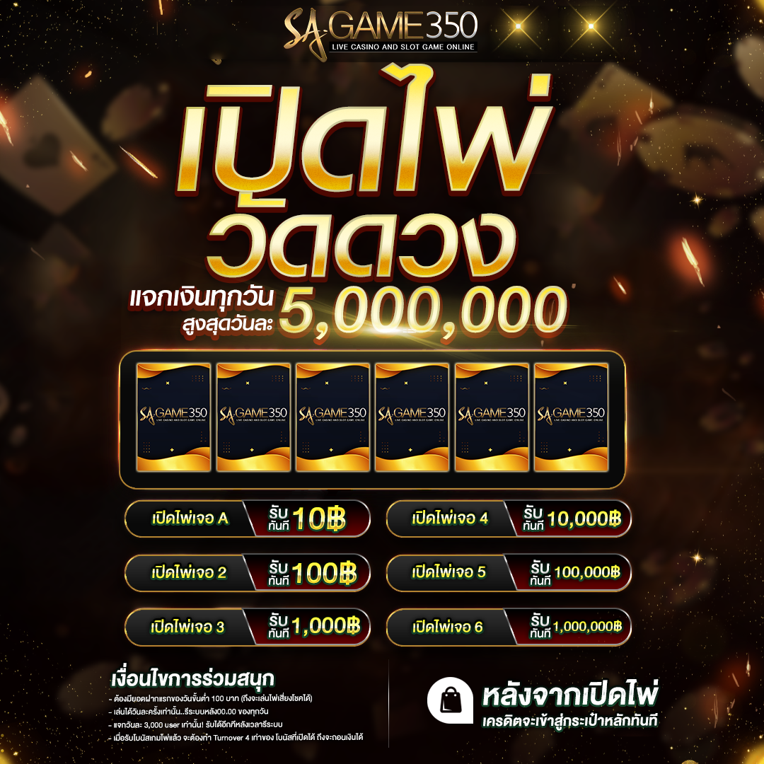 SAGAME350 เว็บรวมคาสิโนออนไลน์ บาคาร่า เสือมังกร เกมส์ไพ่ ไฮโล รูเล็ต แทงบอล มีโต๊ะพนันให้เลือกเล่นมากกว่า 10โต๊ะ ด้านเกมส์ออนไลน์ เช่น สล็อต เกมส์ยิงปลา รวมทุกค่ายในเว็บเดียว ความสนุกที่ถูกบรรจุเอาไว้ให้เล่นได้ทุกอุปกรณ์ เล่นผ่านมือถือได้เลย เกมส์คาสิโนทุกเกมส์ ส่งตรงจากค่ายเกมส์พนันดังที่โดนใจคนไทยมากที่สุด SA GAMING , AE CASINO , WM CASINO, DG CASINO, PG , JOKER GAMING, SIMPLEPLAY , SBOBET เว็บรวมคาสิโนดีที่สุด