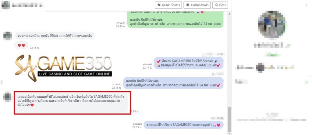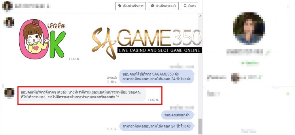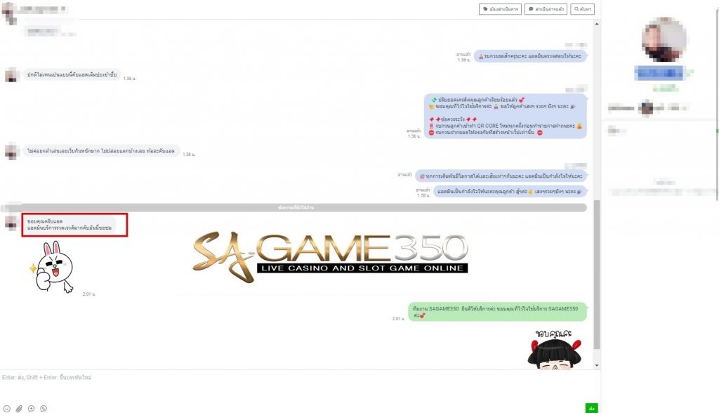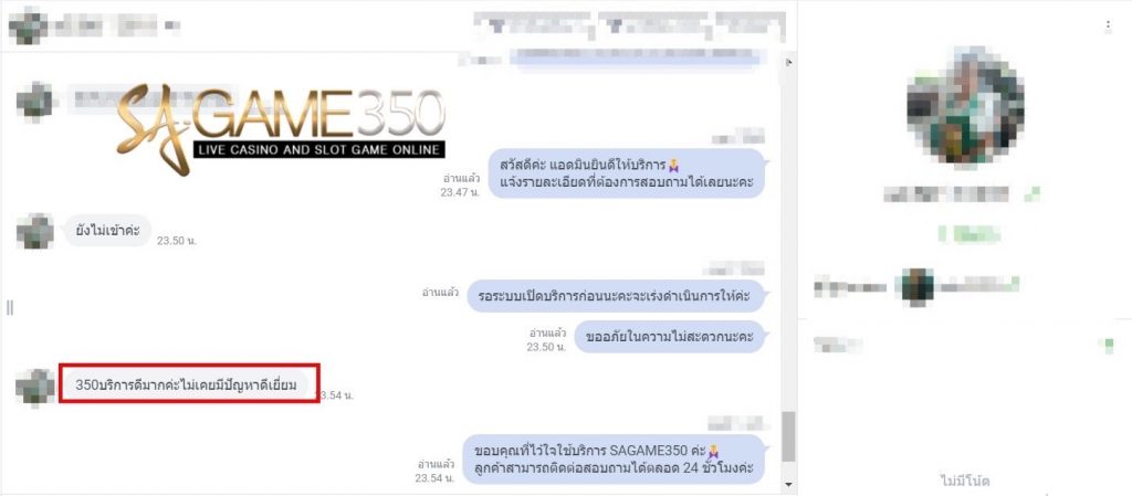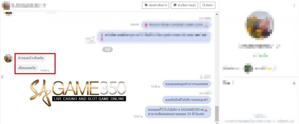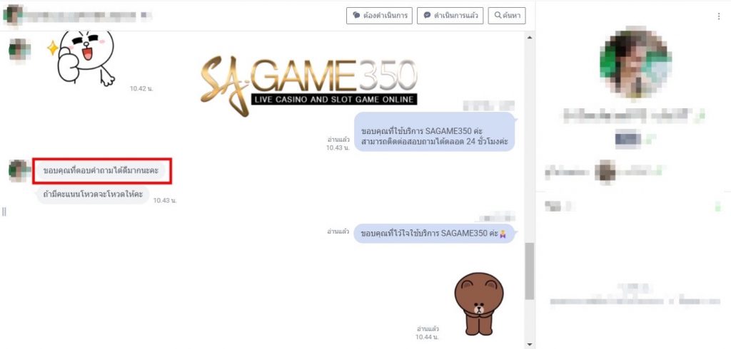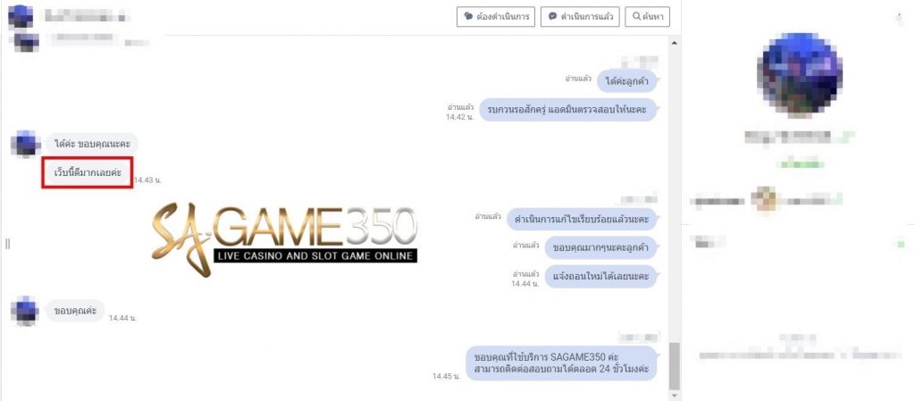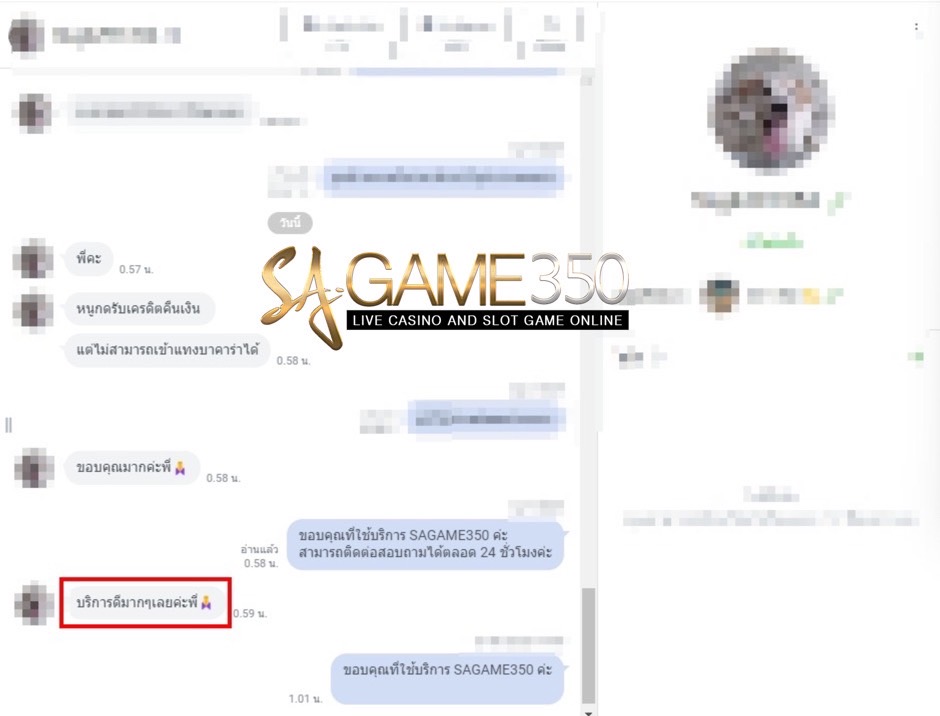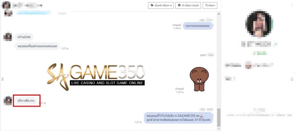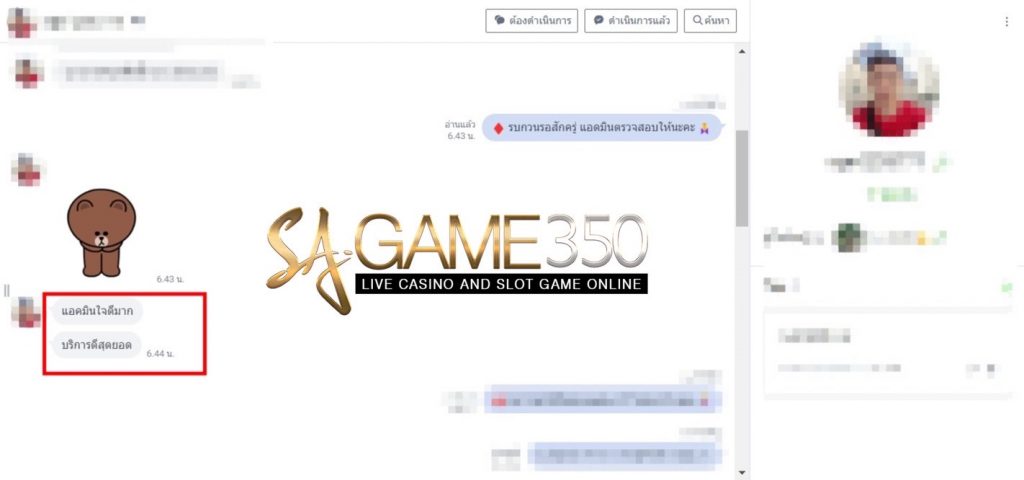 นอกจากบริการด้านคาสิโนออนไลน์ และโปรโมชั่นที่คุ้มค่าเมื่อเล่นที่ SAGAME350 การบริการลูกค้า เรื่องการตอบคำถาม และช่วยเหลือต่างๆ เราก็ให้บริการที่ดีเยี่ยมดั่งลูกค้า VIP จนได้กระแสตอบรับจากลูกค้า