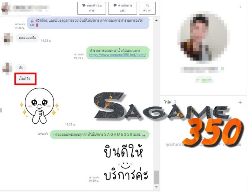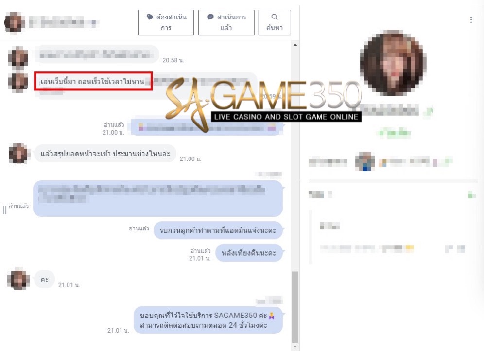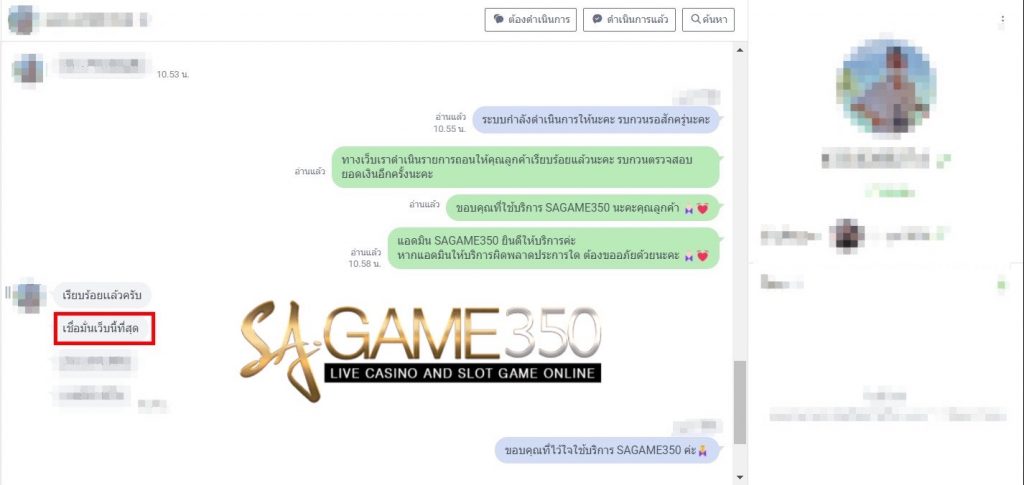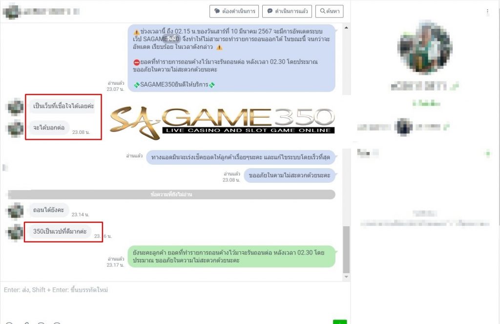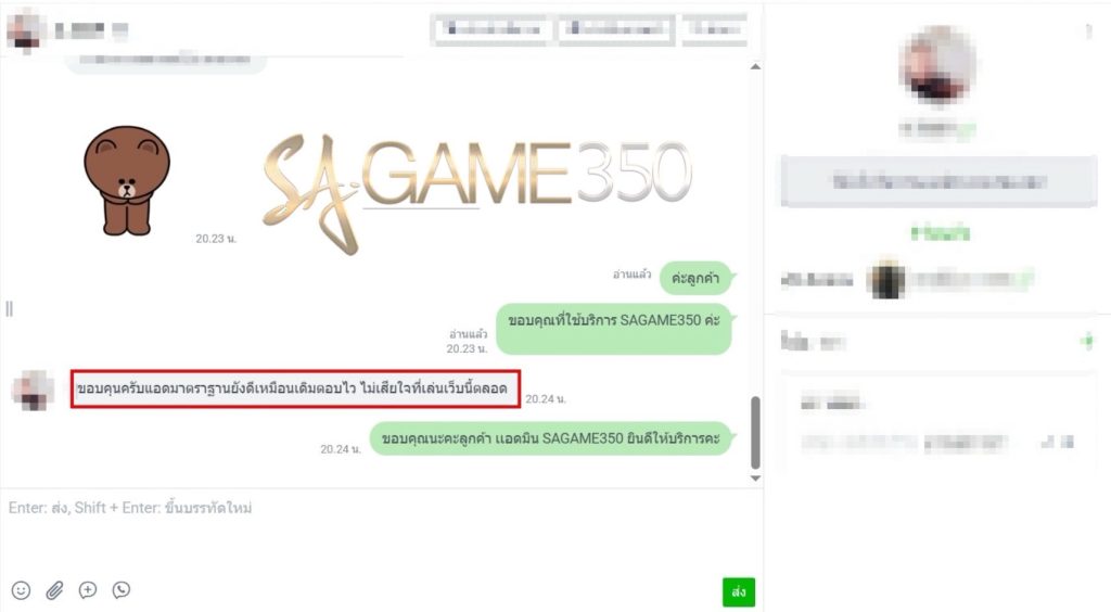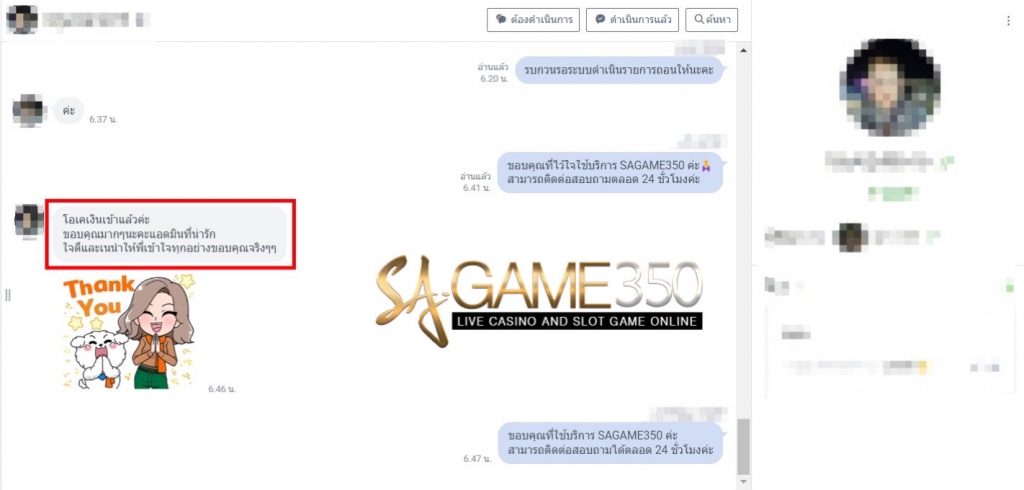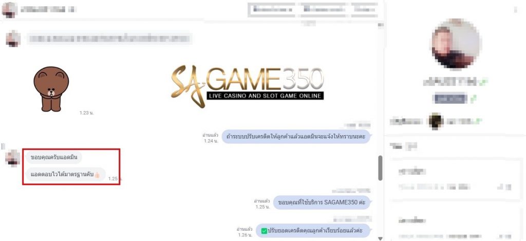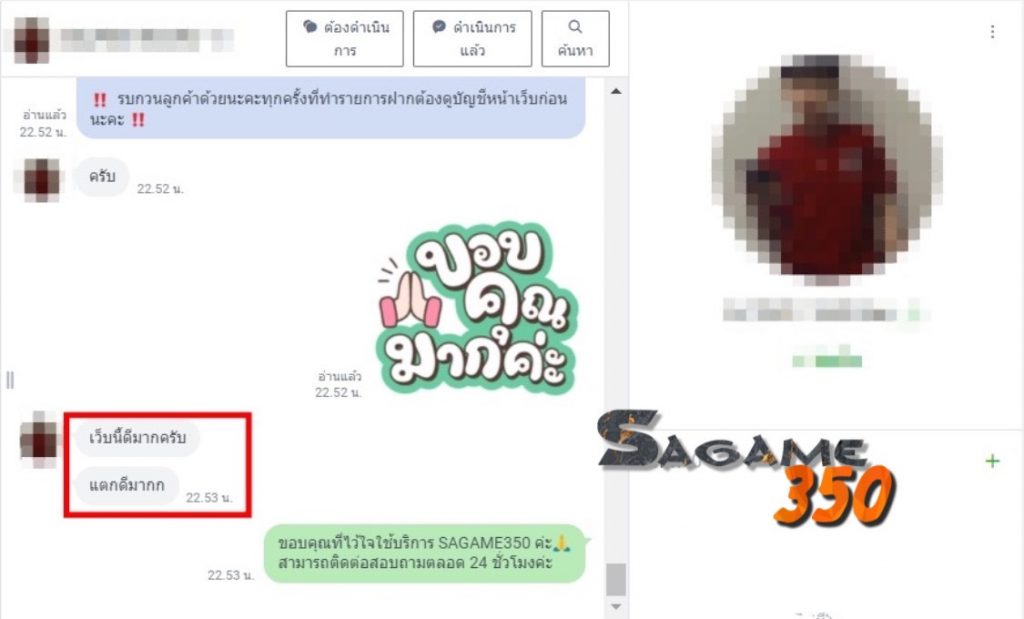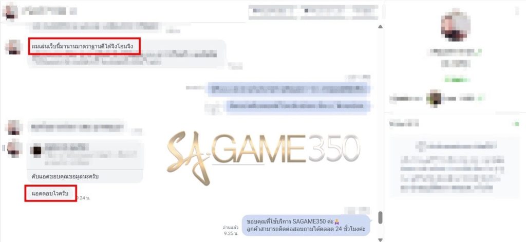 นอกจากบริการด้านคาสิโนออนไลน์ และโปรโมชั่นที่คุ้มค่าเมื่อเล่นที่ SAGAME350 การบริการลูกค้า เรื่องการตอบคำถาม และช่วยเหลือต่างๆ เราก็ให้บริการที่ดีเยี่ยมดั่งลูกค้า VIP จนได้กระแสตอบรับจากลูกค้า