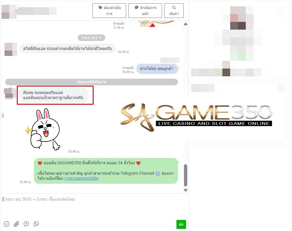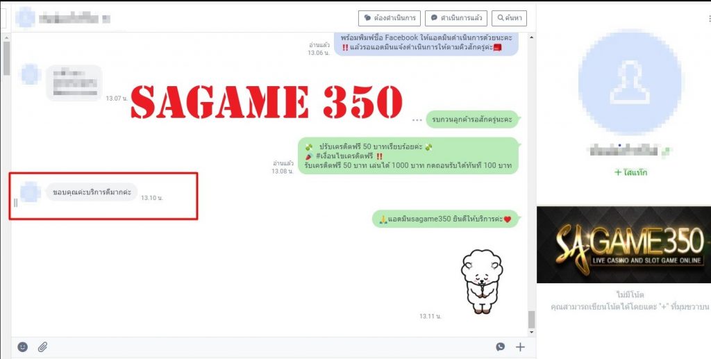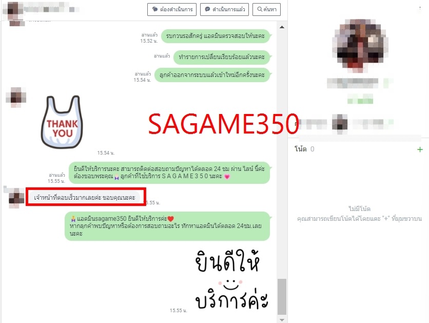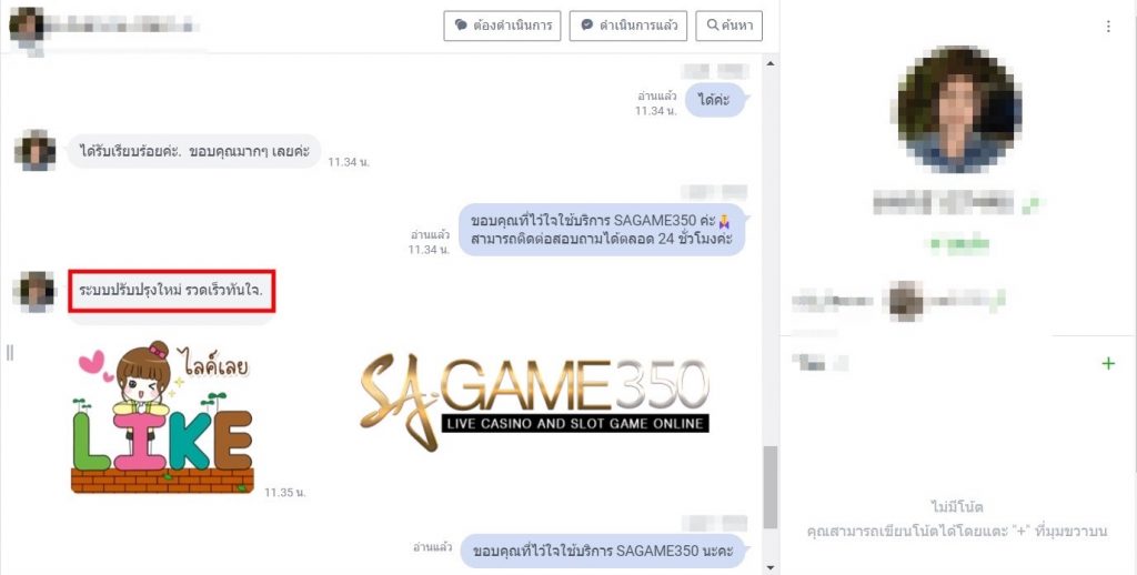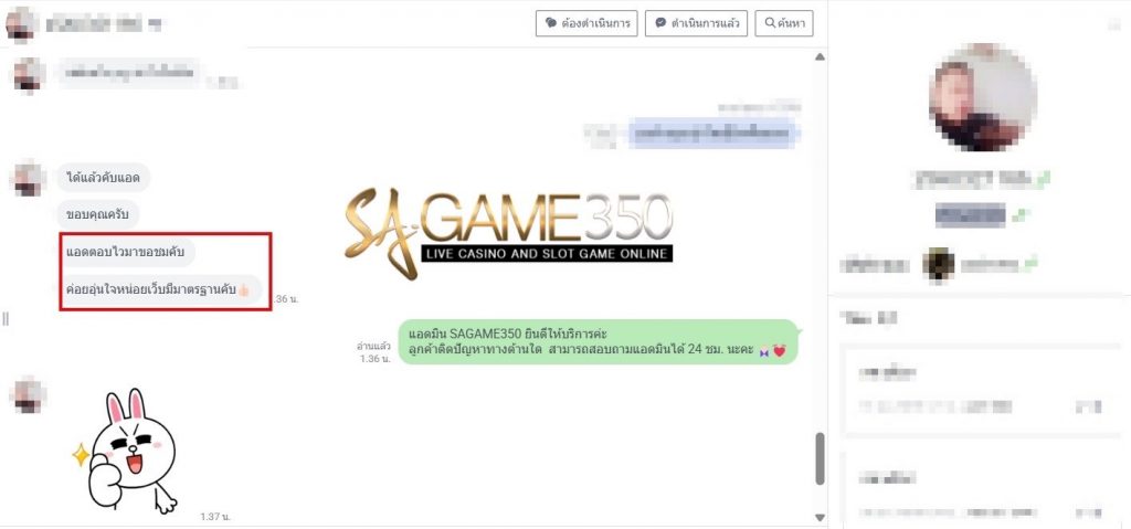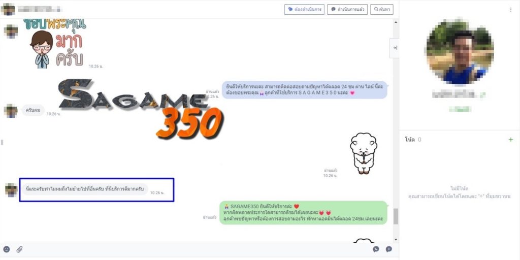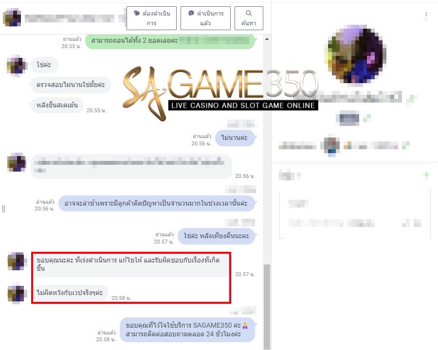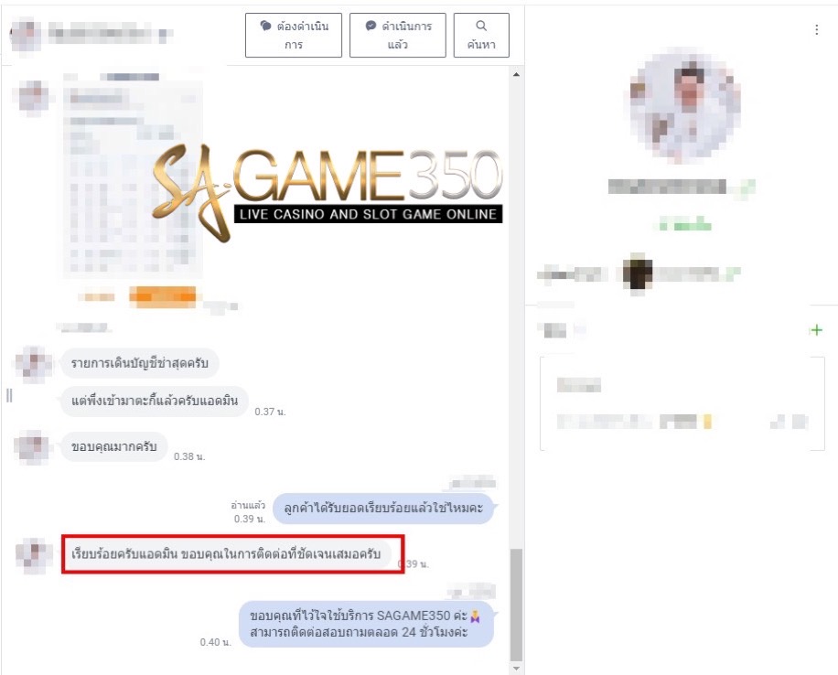 นอกจากบริการด้านคาสิโนออนไลน์ และโปรโมชั่นที่คุ้มค่าเมื่อเล่นที่ SAGAME350 การบริการลูกค้า เรื่องการตอบคำถาม และช่วยเหลือต่างๆ เราก็ให้บริการที่ดีเยี่ยมดั่งลูกค้า VIP จนได้กระแสตอบรับจากลูกค้า