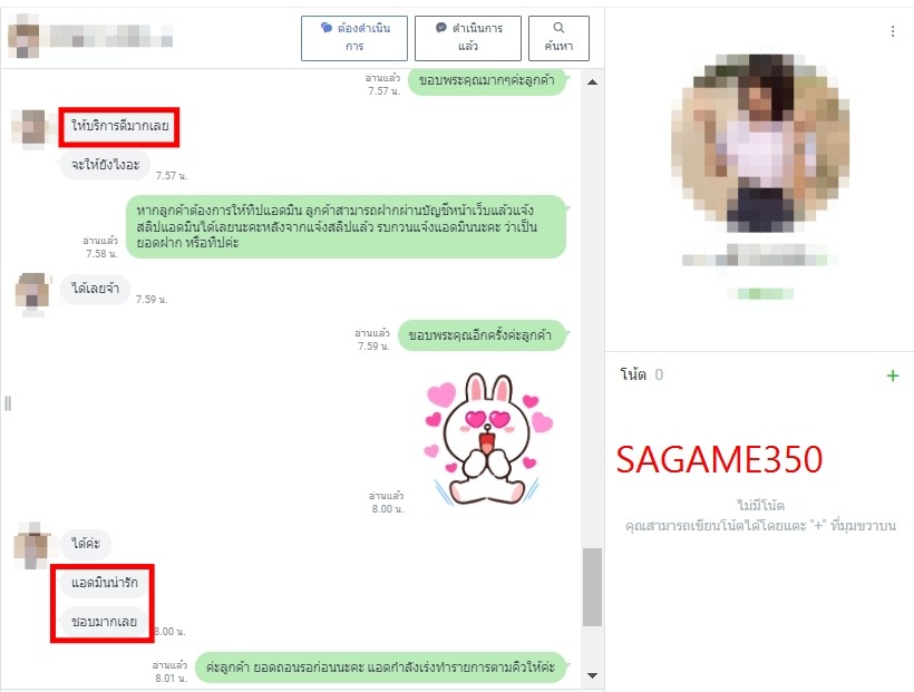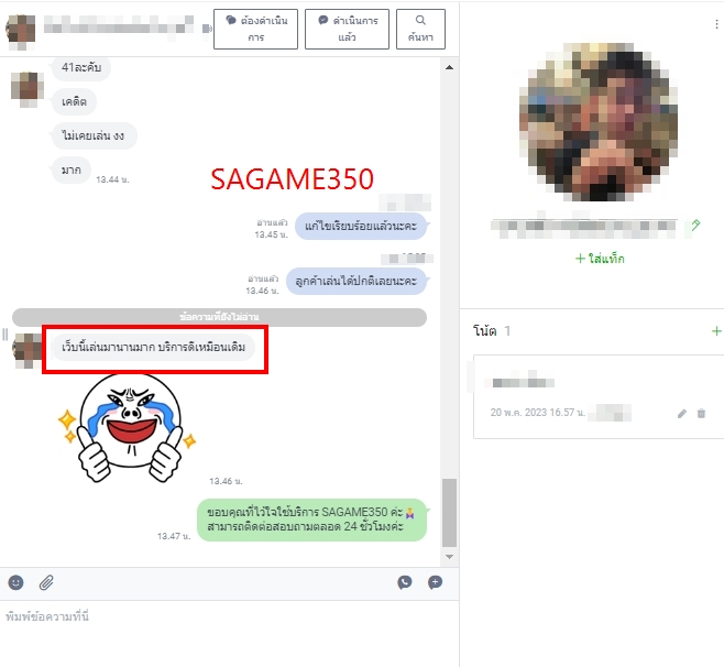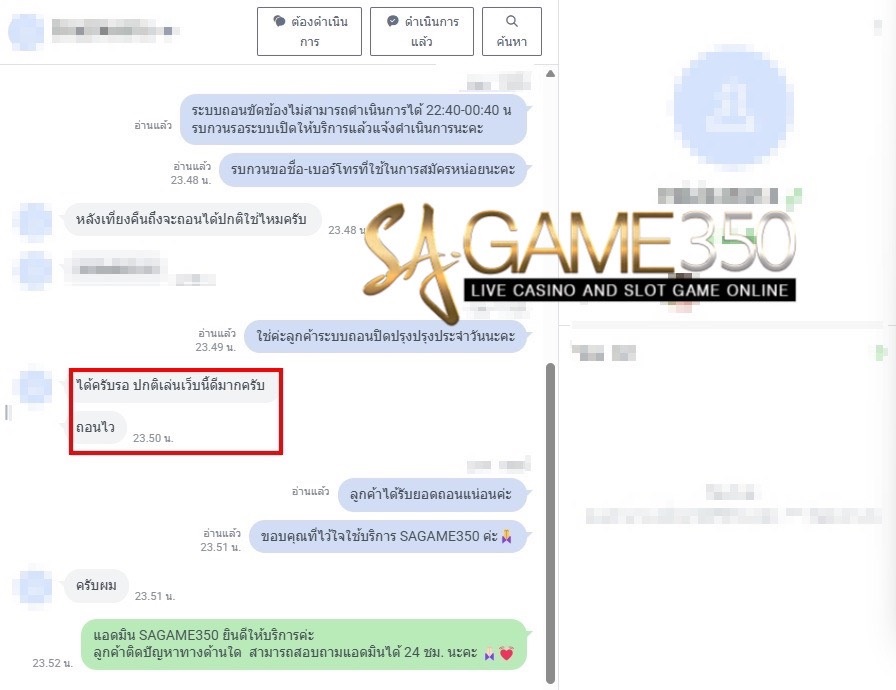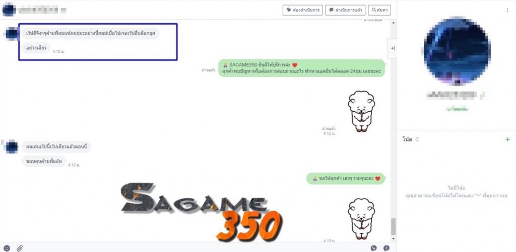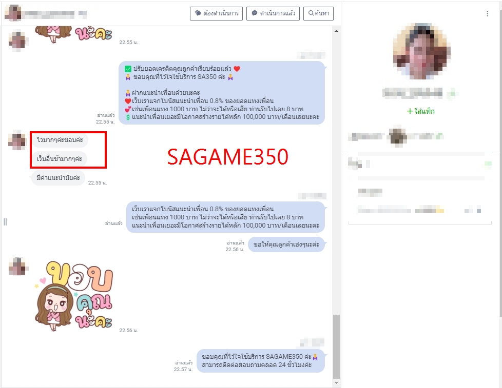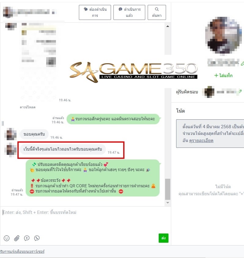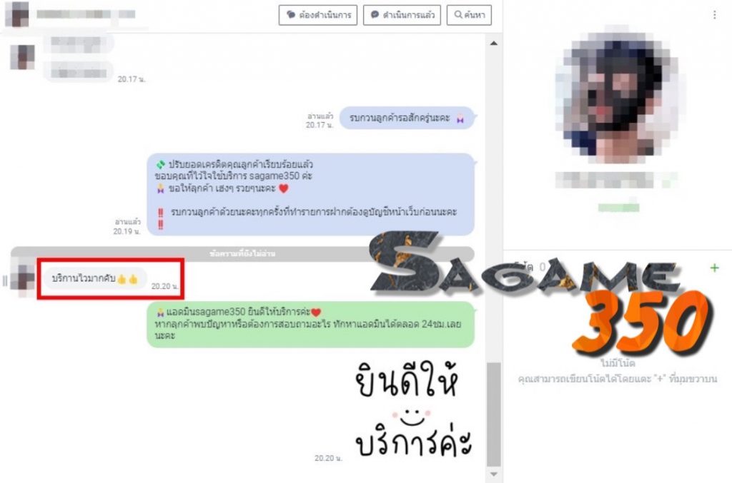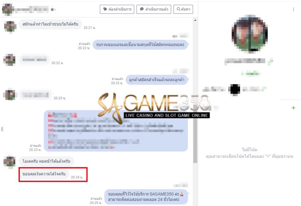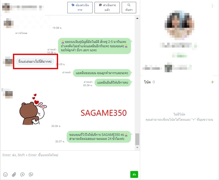 นอกจากบริการด้านคาสิโนออนไลน์ และโปรโมชั่นที่คุ้มค่าเมื่อเล่นที่ SAGAME350 การบริการลูกค้า เรื่องการตอบคำถาม และช่วยเหลือต่างๆ เราก็ให้บริการที่ดีเยี่ยมดั่งลูกค้า VIP จนได้กระแสตอบรับจากลูกค้า