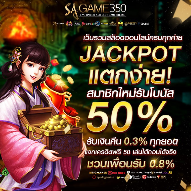 เว็บเล่นสล็อตออนไลน์ที่ดีที่สุด เกมเยอะมากจากค่ายดัง เช่น SA Gaming, PG Slot, Joker Gaming, UFA SLOT, RED TIGER , SIMPLEPLAY, KA GAMING , DRAGON GAMING , RICH88 , YGGDRASIL เล่นง่าย ภาพสวย เอฟเฟคและเสียงเพลง ตื่นตาตื่นใจตลอดระยะเวลาที่เล่นสล็อตบนเว็บ Sagame350 สำหรับสมาชิกที่ต้องการเล่นแบบเครดิตฟรี สามารถทดลองเล่นได้จากการเลือกค่ายเกมที่มีเครดิตฟรีให้เล่น ไม่ต้องเติมเงิน ไม่ต้องฝากเงินก็เล่นสล็อตจากเว็บของเราได้ฟรีๆ ถ้าเล่นเก่งแล้ว หรือถูกใจ และต้องการเดิมพัน ก็ฝากเงินมาเล่นได้ โปรโมชั่นสล็อตโดนใจ กับโบนัส 50% สำหรับสมาชิกใหม่ที่ฝากเงินเข้ามาเล่นเกมส์ในตอนนี้ แจกเครดิตฟรีทุกวัน วันละ 50บาท เล่นได้ ถอนเงินได้จริง กดดูรายละเอียดที่นี่