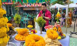 วันที่ 17 มีนาคม 2567 ณ วัดนางตะเตียน ตำบลคลองเขิน อำเภอเมือง จังหวัดสมุทรสงคราม พลตำรวจตรีสุเมธ ปุณสีห์ อดีตผู้บังคับการตำรวจภูธรจังหวัดสมุทรสงคราม ประธานศิษย์วัดนางตะเคียน ได้เป็นประธานในพิธีบวงสรวงและเททองหล่อชนวนนำฤกษ์วัตถุมงคลพญาครุฑ กางปีกเหินเวหา เพื่อสืบสานส่งเสริมการท่องเที่ยว และหารายได้สนับสนุนวัดนางตะเคียน และกิจกรรมการกุศล ตลอดจนเป็นกุศโลบายดึงให้คนเข้าวัด พร้อมกับพระปลัดอนันต์ จันทปัญโญ เจ้าอาวาสวัดนางตะเคียน ประธานฝ่ายสงฆ์ และพระสงฆ์เจริญพระพุทธมนต์ เพื่อความเป็นสิริมงคล ในการนี้ มีนายศิริศักดิ์ ศิริมังคลา ผู้ว่าราชการจังหวัดสมุทรสงคราม และข้าราชการตำรวจ ประชาชน นักท่องเที่ยวร่วมพิธีกันอย่างคึกคัก ในช่วงพิธี ชาวบ้านได้มีโอกาสลุ้นโชคลาภ โดยได้เลขเด็ด 691 และ 980 จากพระพุทธมนต์พญาครุฑ ซึ่งเป็นพญาครุฑที่มีความเชื่อมากมายในชุมชน หลังจากพิธีเสร็จสิ้น พระอาสาสมัครใจวัดนางตะเคียนได้แจกเหรียญพญาครุฑจำนวน 999 เหรียญ และน้ำดื่ม 5,000 ขวดให้กับนักท่องเที่ยวและชาวบ้านในพื้นที่ ชาวบ้านที่รู้ข่าวมาต่อแถวกันยาวเหยียด พลตำรวจตรีสุเมธ กล่าวว่า ตนห้อยพญาครุฑ และนับถือมาตั้งแต่เด็กๆ เพราะได้เจอประสบการณ์ของตนเมื่อเป็นเด็ก ที่ต้องเผชิญกับงูเห่าตัวใหญ่ และความเชื่อในพญาครุฑ […]